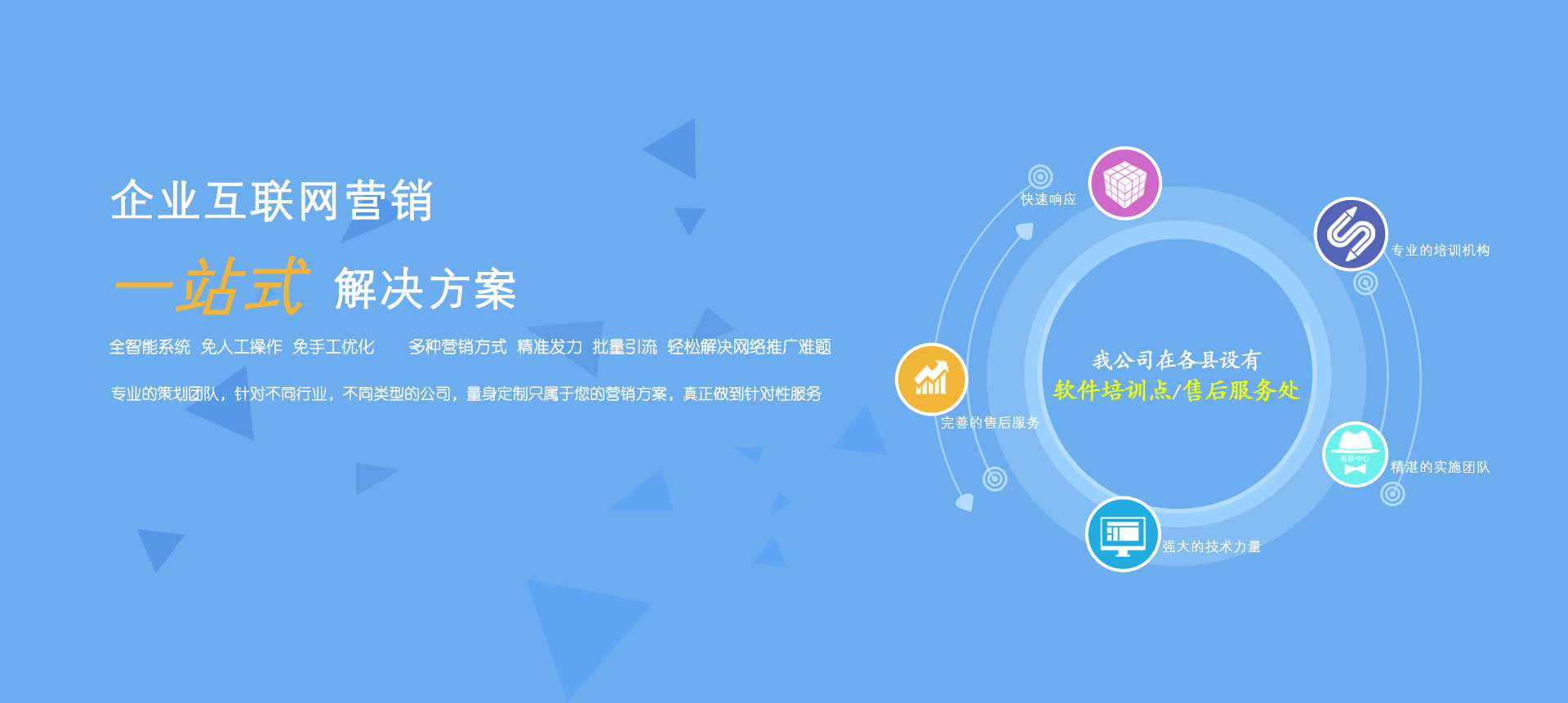 我公司在各縣設有軟件培訓點和售后服務處。本公司有專業(yè)的培訓機構、精湛的實施團隊、強大的技術力量、完善的售后服務。承諾:“快速響應,隨叫隨到”。絕不會因我們的原因影響會計人員的結賬、報表等工作。